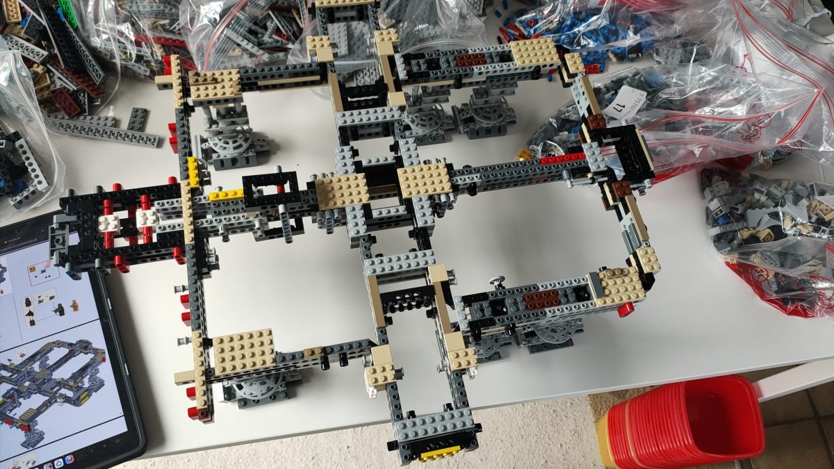In het begin verloor ik veel tijd met de bricks te zoeken. Telkens in het mapje kijken om te weten in welk zakje ik bepaalde bricks kon vinden was tijdrovend. Na verloop van tijd echter weet je wel bijna automatisch in welk zakje je moet gaan kijken en gaat het bouwen wat sneller vooruit.