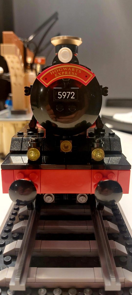 Draai aan de hendel bovenop de locomotief en zie hem heen en weer schommelen als een echte stoomtrein. In de tender zit steenkool, en de passagierswagon bevat drie coupés met elk een iconische filmscène: Harry, Ron en Hermelien die elkaar voor het eerst ontmoeten, professor Lupos die Harry redt van de Dementor, en Loena die Harry helpt na Draco's spreuk. Als finishing touch: een stukje Perron 9¾ waar de volwassen Harry en Ginny staan te wachten met Lily, James en Albus.