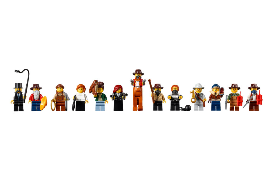 Bij dit set zitten 13 minifiguren en 8 dieren, elk met een eigen naam en verhaal: